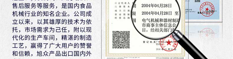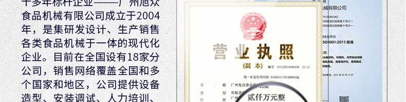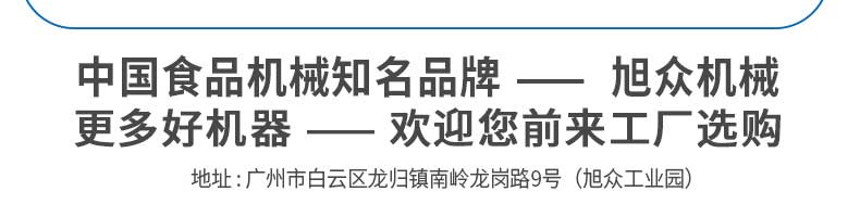 廣州旭眾食品機(jī)械有限公司是一家集科研開(kāi)發(fā),生產(chǎn)設(shè)計(jì),營(yíng)銷(xiāo)服務(wù)為一體的現(xiàn)代化生產(chǎn)企業(yè)?,F(xiàn)代化生產(chǎn)車(chē)間,精湛制造技術(shù),所產(chǎn)機(jī)械歷經(jīng)市場(chǎng)重重考驗(yàn),不斷贏(yíng)得海內(nèi)外客戶(hù)的贊譽(yù)。