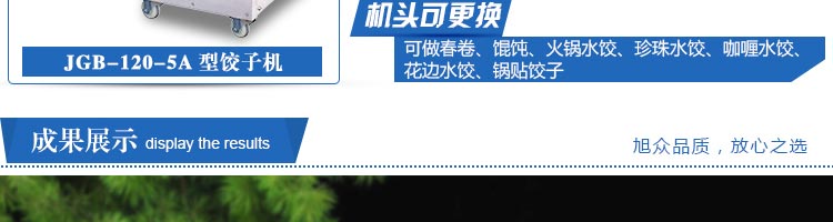 JGB-120-5A型輸送帶餃子機(jī),本機(jī)是一款可生產(chǎn)各種肉餡、肉菜混合餡、全菜餡及其他種餡餃子的設(shè)備。一機(jī)多用途,只要更換模具,就可制作不同的食品,如春卷、餛飩、咖喱角、鍋貼等。適用于賓館、飯店、餐廳、團(tuán)體食堂加工,幼兒園、速凍餃子生產(chǎn)。