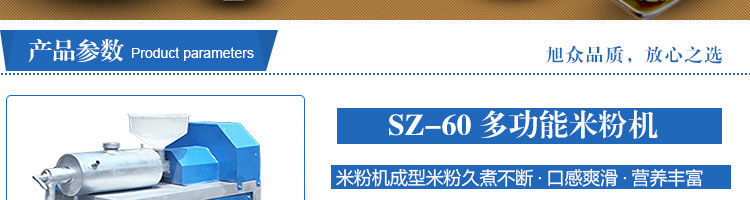 SZ-60多功能米粉機,生產(chǎn)多樣性可生產(chǎn)米粉、米線、粉絲、粉條、、年糕、玉米面條、各種雜糧粉絲、各種面條、雜糧面條、彩色面條以及以紅薯、玉米、大豆、蠶豆等制成淀粉為原料的等多種食品而且每種食品厚薄、粗細等規(guī)格可根據(jù)需要任意調(diào)整。
