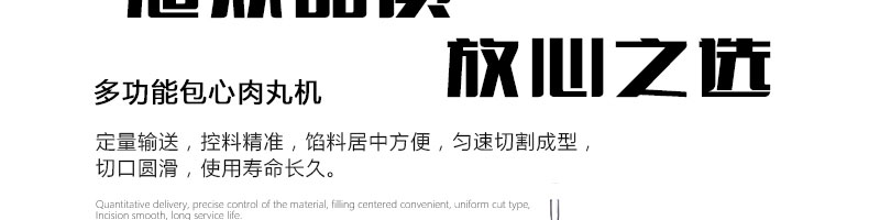 SZ-602包心肉丸機,可生產包心魚丸、包心豬肉丸、撒尿牛肉丸、爆汁小魚丸等多種球形醬湯類包餡產品。操控性強、穩(wěn)定性高、出品率穩(wěn)定;可抽皮增餡,做到皮薄餡多。