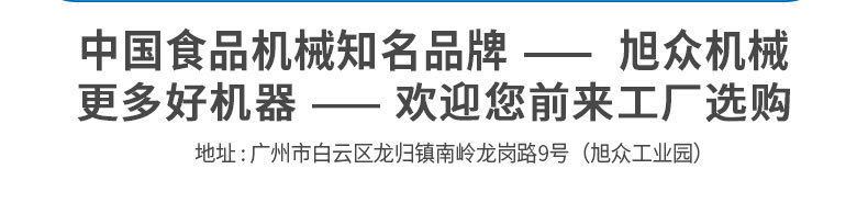 廣州旭眾食品機(jī)械有限公司是一家集科研開(kāi)發(fā),生產(chǎn)設(shè)計(jì),營(yíng)銷服務(wù)為一體的現(xiàn)代化生產(chǎn)企業(yè)。現(xiàn)代化生產(chǎn)車(chē)間,精湛制造技術(shù),所產(chǎn)機(jī)械歷經(jīng)市場(chǎng)重重考驗(yàn),不斷贏得海內(nèi)外客戶的贊譽(yù)。