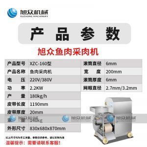 XZC-160型魚肉采肉機,去刺干凈、高效出肉。加工魚肉去刺、蟹蝦去殼等。手工去魚刺太累了,傳統(tǒng)的魚糜加工中,手工去魚皮魚刺,既費時又費力不小心就會傷到手。
